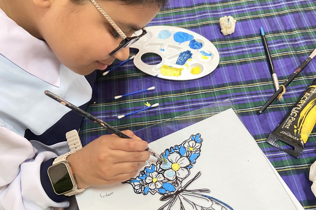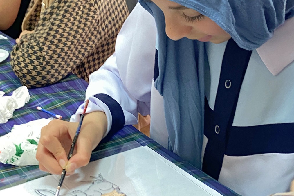 L’Institution privée « Awrak » a organisé une initiative humaine pionnière : un atelier pratique de peinture sur verre. Ce qui a rendu cette activité véritablement unique, c’est son encadrement. En effet, ce sont les élèves du « Club de dessin » de l’institution qui ont eux-mêmes supervisé l’atelier. Cette approche innovante a créé un magnifique environnement d’échange entre pairs et a cultivé la culture du bénévolat chez les jeunes.